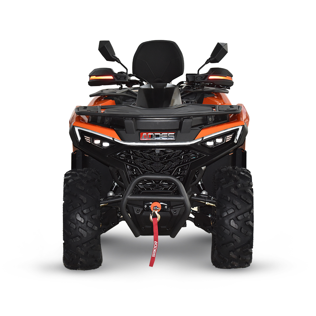 Model je vybaven vším potřebným pro pohodlný provoz i rekreační využití: přední a zadní nosiče, nárazníky, naviják, zpětná zrcátka, tažné zařízení, a ve verzi Pro navíc také posilovač řízení a hliníková kola.
